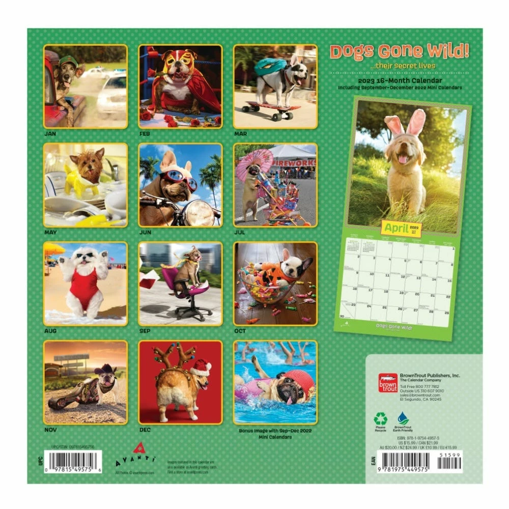 Brown Trout Avanti Dogs Gone Wild 2023 Square Calendar – Calendars