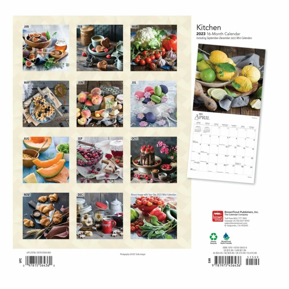 Enjoy the beauty and elegance of vibrant place settings, colorful patterns, and an assortment of fresh food styled in simple and country-style presentations. Take the time to be inspired and appreciate the creations in your kitchen with this wonderful wall calendar.Â