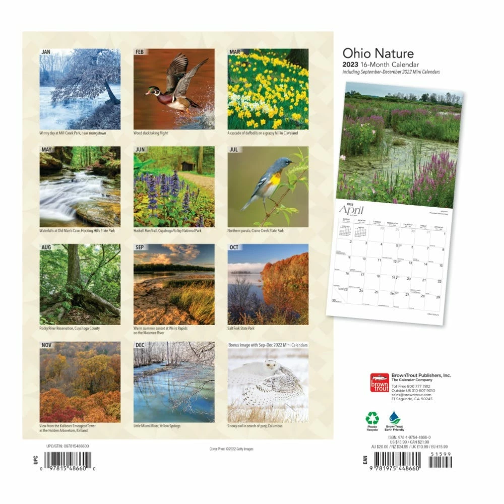 The beautiful Buckeye State boasts colorful forests, thriving wetlands, beaches along Lake Erie, and numerous nature preserves. Celebrate the natural splendor of Ohio with this stunning mini wall calendar.Â