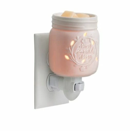 - Inspired by the famous home canning jars, this porcelain fragrance warmer glows when lit with the phrase “home sweet home”Pluggable Fragrance Warmers can be used in both vertical and horizontal outlets by twisting the plug base, making them ideal above counter outlets in small rooms and spaces