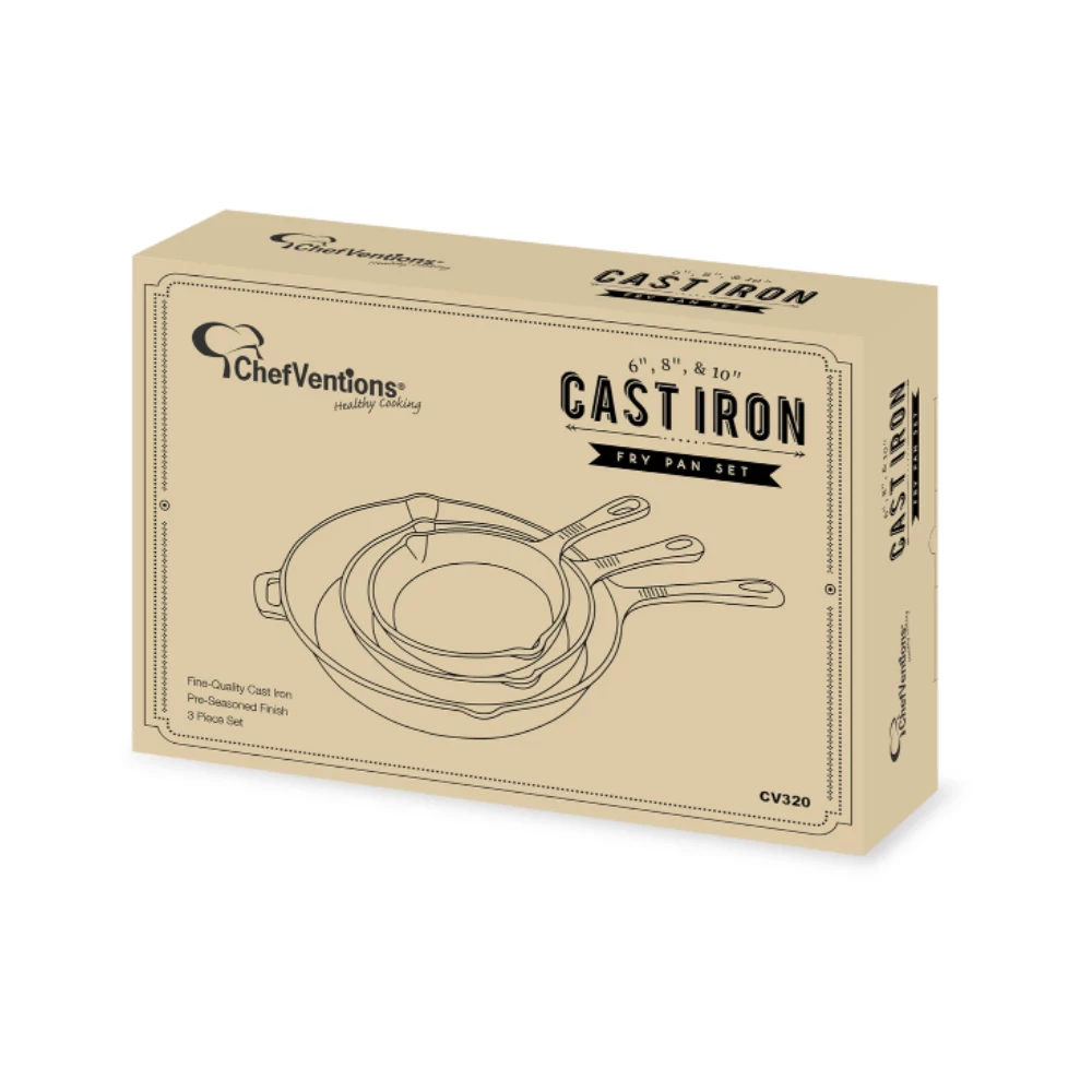 ChefVention’s Cast Iron full cooking line offers a great addition to your kitchen for tasty and healthy cooking. Specially designed to retain heat longer, prevent burning hot spots, and distribute heat evenly. This versatile cast iron cooking line allows you to serve directly from your stove or oven to the dinner table.