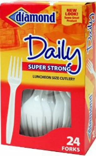 On the road or in the backyard, Diamond® Daily Cutlery is the strong, sensible solution to enjoying any snack or meal. Forks, Luncheon Size Cutlery, Super Strong, Heavy Duty New look! Same great product. Jarden Home Brands is committed to environmentally responsible packaging and products. Made in USA.
