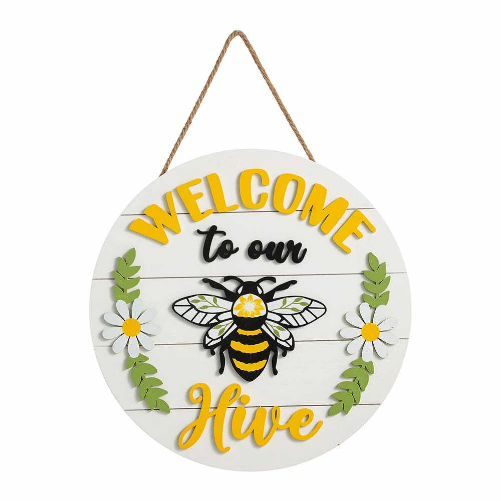 Glitzhome 15.7″ Wooden Welcome to our Hive Wall Sign – JKC02000 – Wall Decor