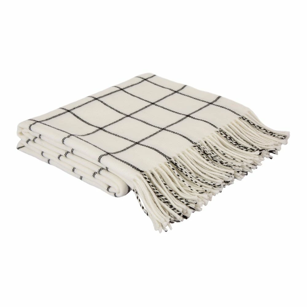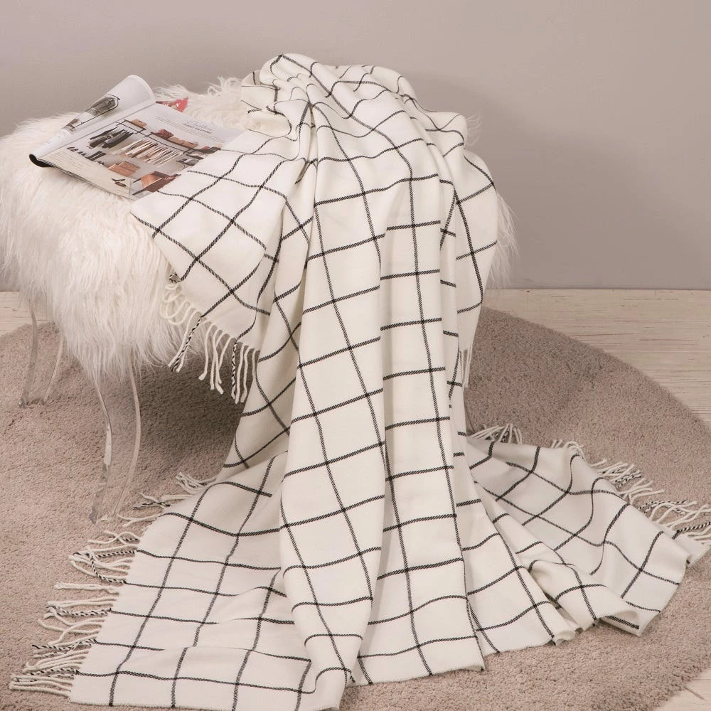 400G Acrylic White Black Plaid Woven Throw Blanket – 1518203175