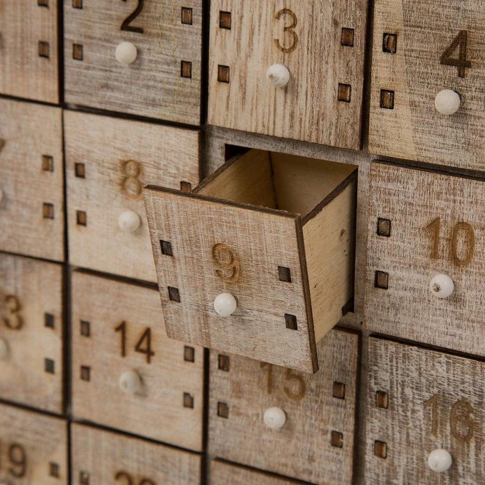Count down the days until Christmas with this very special Farmhouse display Countdown Calendar. Made from sturdy plywood, this house shaped display includes (24) cubby holes for special presents and treats to be stored and enjoyed each day of the month.