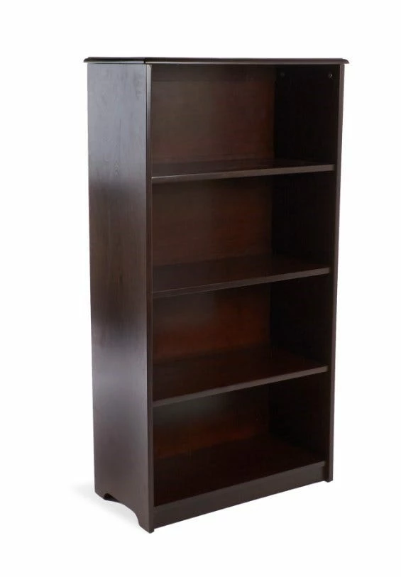 The Classic Espresso Collection features a combination of design, function, and elegance, styled to coordinate with a variety of room decor. This attractive single-sided bookcase fits flush against walls and has four display shelves each approximately 11.5″ deep. Three of the shelves are adjustable, one is fixed. The handsome espresso veneer, rounded edges and durable construction makes this unit ideal for library, classroom or common areas. Adult assembly required.