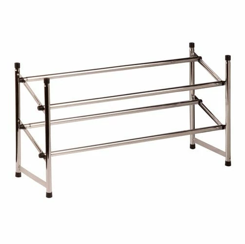 Honey-Can-Do SHO-01170 2-Tier Expandable Stackable Shoe Rack, Chrome. Â Customize your shoe storage with this versatile 2-tier shoe rack. As your shoe collection grows, the rack expands from 24 inches to 44 inches wide. Plus, the stackable design means you can add multiple racks for even more storage without taking up more floor space. Constructed of chrome-finished steel, the frame is rust-resistant and coordinates nicely with any decor. Some assembly required.