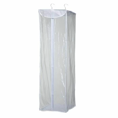 Honey-Can-Do SFT-01415 Short Hanging Storage Closet, White / Clear. Protect your wardrobe investment with this hanging storage closet. The breathable material surrounds your wardrobe to prevent moths, musty odors, and dust or debris from damaging your clothing. Full-view, transparent front with zipper closure allows you to easily see the contents. Measuring a sizable 42″ high x 12″ wide, you can easily store your suits, jackets, shirts, and other shorter garments inside. A heavy duty metal frame gives strength and support to heavier items. Setup couldn’t be easier, just hang it from any standard closet rod and it’s ready to use.