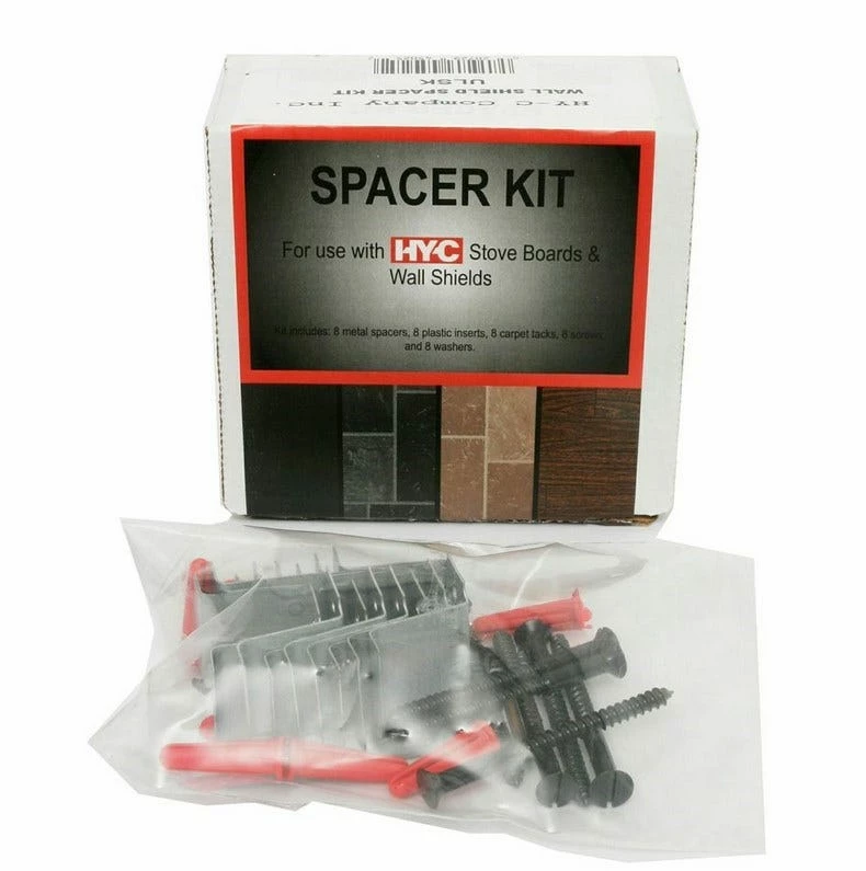 A Spacer Kit provides 1″ of airspace between the wall and the stove board and also reduces the clearance between the stove and the wall.