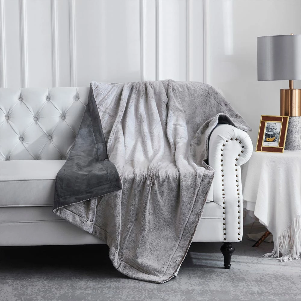 Unwind with this chic, faux rabbit reversible to mink throw blanket. With a perfect mix of fashion and function, you will fall in love with the pleasure of a peaceful rest.