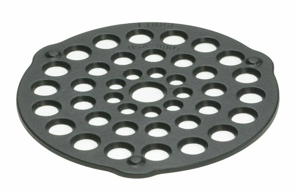 - 8-inch cast-iron meat rack/trivet designed for use with Lodge Dutch ovens