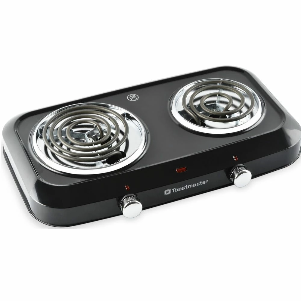 Take your stove top anywhere with this Toastmaster Double Burner. It is constructed of sturdy and durable materials and features two independent coils. This electric burner comes with two chrome drip pans and two variable temperature controls ranging from Lo to High to suit the chef’s personal needs.