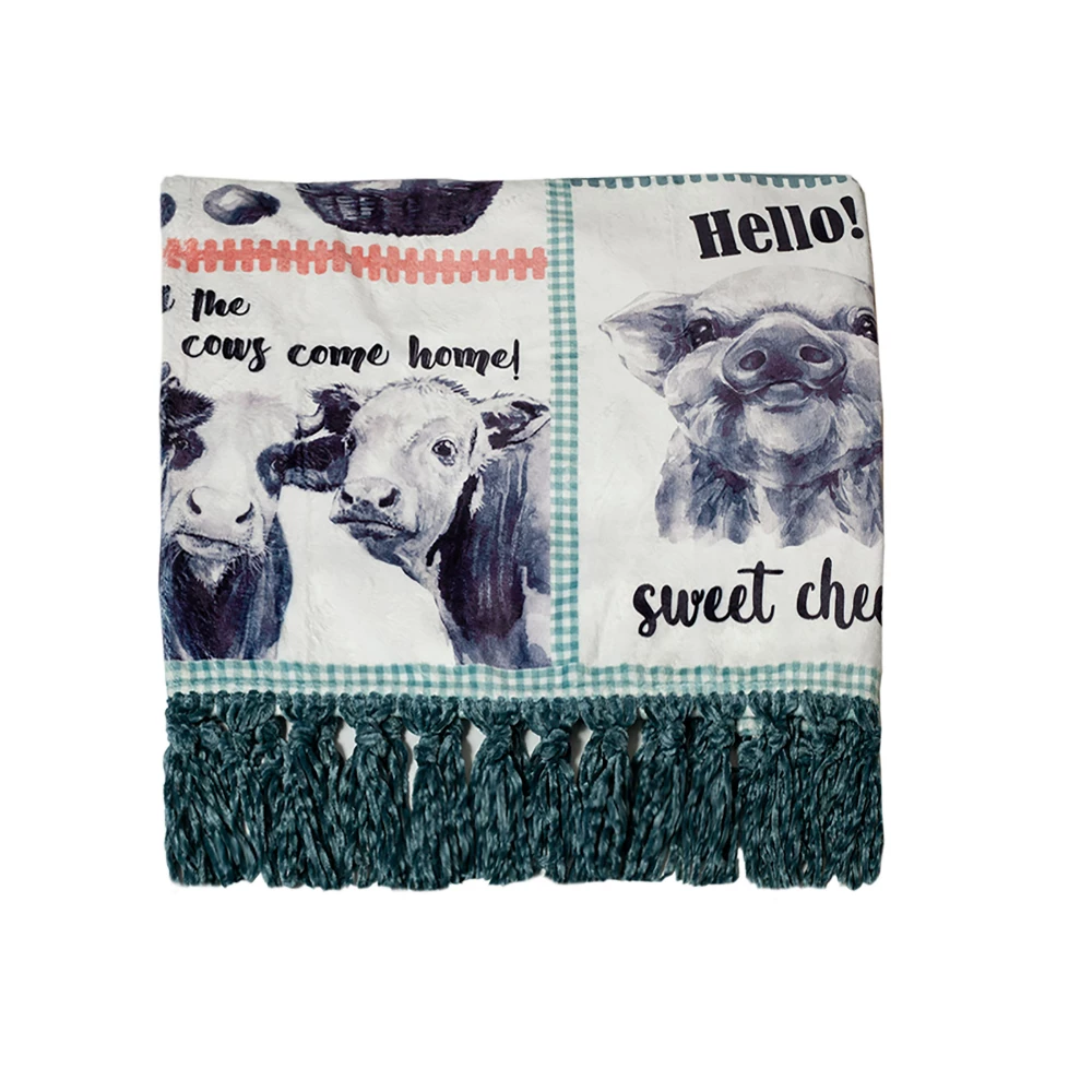 URBAN DEER Silly Farm velvet 50 x 60 throw with Fringe – RK-VELFR-SILY – Blankets & Bedspreads