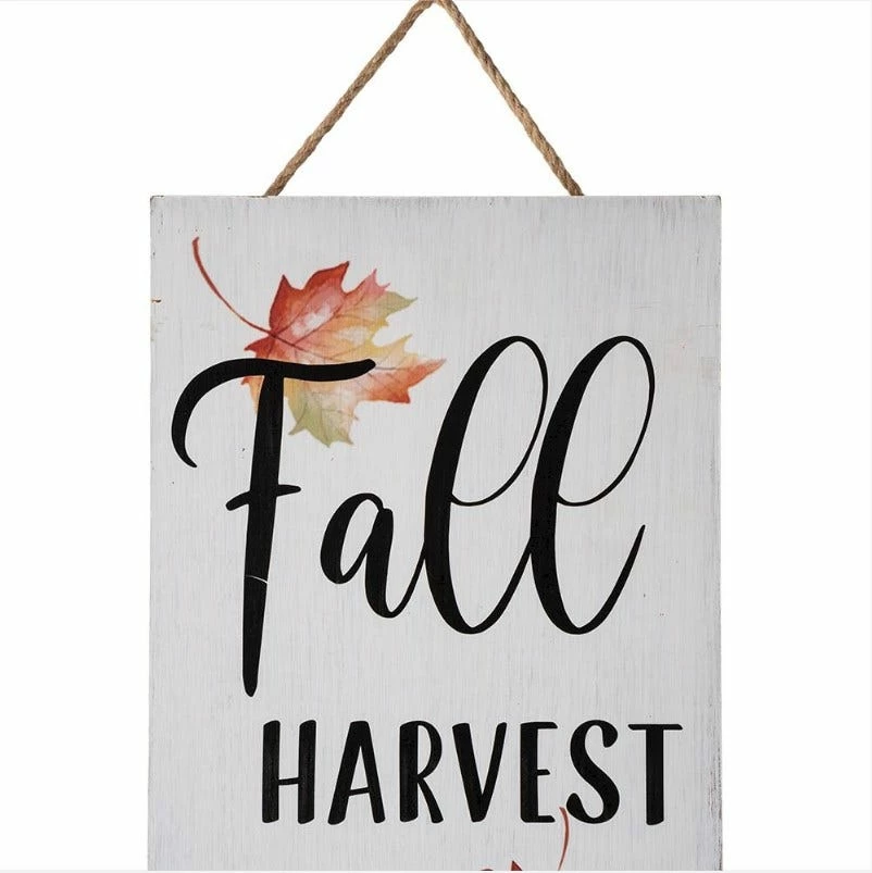 Greet guests and passersby with a message of seasonal cheer with pumpkin,squirrel. The words saying Fall, Harvest. With a jute rope for easy hanging.