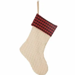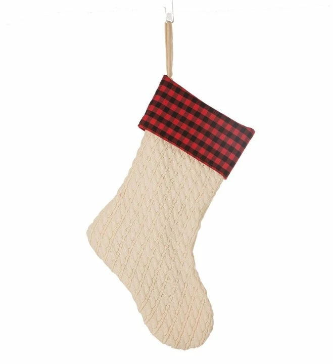 - It is styled in ivory knitted with red and black fabric plaid