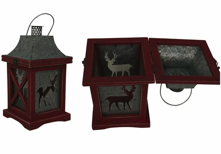 - The product features in wooden and galvanized metal material, style in reindeer cutout.
