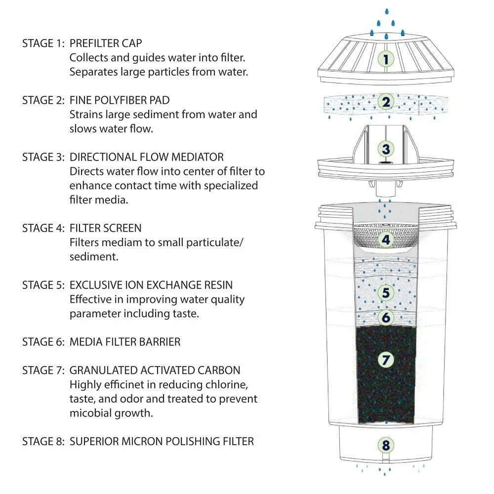 - System includes 1 long life, multi-stage filter which lasts up to 6 months or 800L