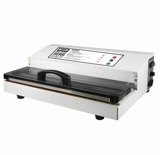 - Commercial-grade vacuum sealer with an extra large bar for sealing bags up to 15” wide